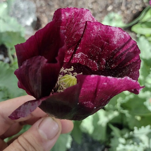 If you're looking for a strikingly dark flower to grace your garden, look no further! This lovely poppy bred by Frank Morton and Wild Garden Seeds is gorgeous and tasty too! As Frank puts it, "Four petals in the deepest darkest midnight violet." He also notes that the pods do not open pores, so the chocolate brown seeds are retained for harvest.