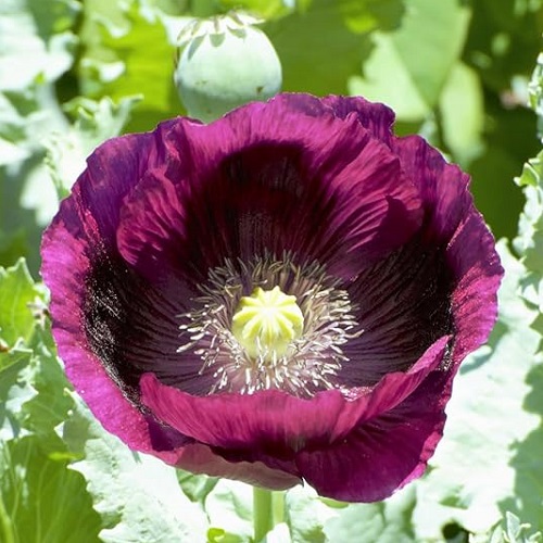 Absolutely stunning 4 to 5 inch chalice-shaped flowers with satiny petals that glow in the most delicious shade of deep ruby-purple. These outstanding, heirloom poppies grow 3 to 5 feet tall, depending on how rich your soil is. With their big, lettuce-like, blue-gray leaves and port wine colored flowers, Lauren’s Grape is a highlight of the spring garden. These beautiful flowers easily self sow to shine again every season. This variety puts on a particularly sensational show in the garden. Magnificent wine-colored blooms and misty blue-green lettuce-leaf-type foliage creates a bold contrast. This dramatic poppy is a garden designer’s dream. It comes as no surprise that the variety was carefully selected and bred by Lauren Springer, a well-known garden designer and author! Lauren’s painterly style shines through in this bold, grape-purple poppy, perfect for creating whimsical landscapes! The clouds of purple blooms are ultra-attractive to pollinators, especially bees. These poppy seeds grow beautiful 4 to 5 inch chalice-shaped medium to dark wine-purple flowers with satiny petals on 36 to 48+ inch stems, depending on how rich your soil is. Lauren's Grape Poppy is an annual herb that blooms summer to early fall, with attractive seed pods extending the season of interest. Highly ornamental, the plant sets extraordinary plum purple flowers with deep purple spots on their crepe papery, tissue-like petals. Borne singly on long, bristly stems, the showy saucer-shaped blooms work well as cut flowers. In the garden, they attract pollinating bees. Lauren's Grape is a Papaver somniferum cultivar, commonly called breadseed poppy. The flowers freely self-seed in suitable conditions, naturalizing and returning from year to year, performing more like a perennial than an annual. Lauren's Grape is shown to best effect when grouped or massed in borders or beds. Extremely low maintenance, Lauren's Grape Poppy grows best in temperate climates in locations with full sun and organically rich, medium moist, well-draining soils. It tolerates drought once established but is intolerant of overly wet, poorly drained soils. Deadheading spent flowers keeps the poppy blooming and reduces unwanted self-seeding. Deer and rabbit resistant. Growing poppies from seed is easy. Direct sow poppy seed in spring or start seeds indoors 6 to 8 weeks before the last frost date and transplant after the threat of frost has passed. These poppies germinate best when air temperature is around 55°F and soil temperature is between 60° and 65°F. In warm climates, seeds can be sown in late fall for an early spring bloom. |